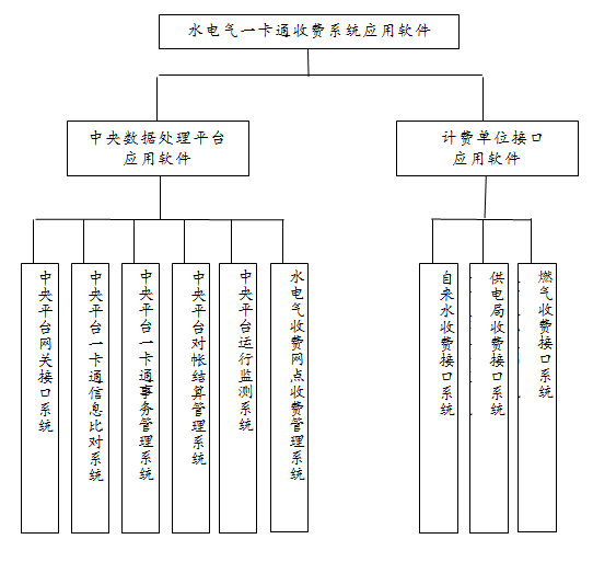 水电气“一卡通”信息化工合作单位包括3家计费单位、几家银行的应用软件方案,应用软件功能图如下: